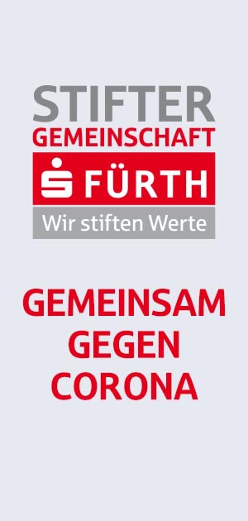 Die Folgen der Corona-Pandemie sind in allen Teilen der Gesellschaft spürbar. Unternehmen, die durch die Krise in Schieflage geraten, Menschen, die durch Kurzarbeit oder Arbeitslosigkeit in Existenznot sind, Familien, die durch die besondere Situation vielfältigen Spannungen ausgesetzt sind. Wir als Stiftergemeinschaft der Sparkasse Fürth wollen ein Zeichen setzen und gemeinsam helfen. Wir rufen deshalb zu Spenden unter dem Stichwort "Corona" an die Stiftergemeinschaft Fürth auf, um damit dort zu helfen, wo es am Nötigsten ist.