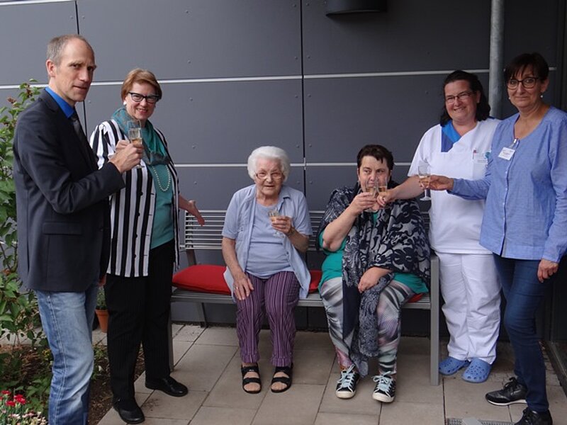 Alten Menschen in Fürth sachkundige Aufmerksamkeit schenken, im Alltag der Senioren praktische Erleichterungen auf den Weg bringen und Senioren immer wieder eine Freude bereiten, das sind die Ziele der Seniorenstiftung Kemmeter. Jedes Jahr werden dafür die Stiftungserträge für die unterschiedlichsten Projekte verwendet. In diesem Jahr konnte sich untern anderem das Sofienheim, das Seniorenpflegeheim der Diakonie Fürth am Südstadtpark, über neue Terrassenmöbel freuen. In einer kleinen Feierstunde überzeugte sich die Stifterin, Dr. Luise Kemmeter, gemeinsam mit Diakon Frieder Parche, Leiter der Stationären Altenhilfe bei der Diakonie Fürth, direkt vor Ort von dem neu eingerichteten Platz. "Ich konnte selbst miterleben, welch großen Zuspruch die Sitzmöbel auf der Terrasse gefunden haben. So bin ich sehr glücklich, dass die Seniorenstiftung Kemmeter erneut, diesmal gemeinsam mit der Diakonie Fürth, älteren Menschen in Fürth eine Freude bereitet hat", so die Stifterin. Und Frieder Parche ergänzt: "Die Terrasse ist eine schöne Abwechslung. Die Seniorinnen und Senioren können sich hier an der frischen Luft entspannen, unterhalten oder einfach nur träumen. Dazu laden die neuen Möbel wirklich ein."