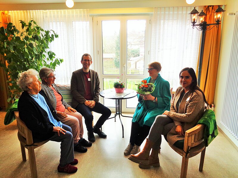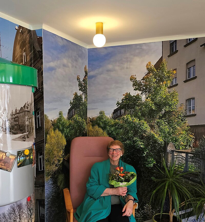 Bei jedem Wetter draußen – das klappt nur in der InnenStadt. Ganz ohne die Gefahren des Autoverkehrs können Bewohnende nach der Idee der Stifterin die neuen Außenbänke nutzen, im Schein der Straßenlaterne und mit Blick auf die vertraute Kulisse der Stadt Fürth.