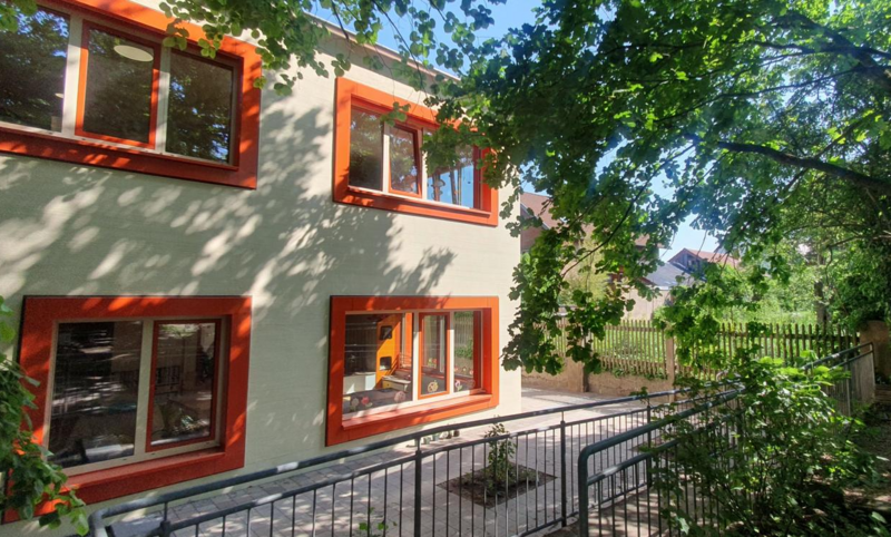 Der Kindergarten, der seit 1985 von der Lebenshilfe Fürth getragen wird, ist einer der ersten integrativen Kindergärten Mittelfrankens. Das über 120 Jahre alte Gebäude wird saniert und um einen Anbau für 15 Kinder ergänzt. Dann können bis zu 15 weitere Kinder aufgenommen werden.