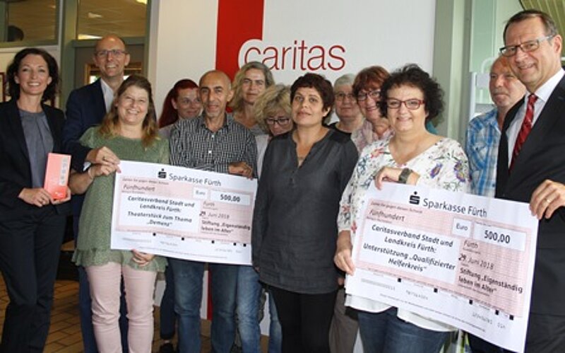 Aktiv und mobil bleiben bis ins hohe Alter – das wünscht sich natürlich jeder von uns. Angesichts einer immer älter werdenden Gesellschaft brauchen wir dafür nicht nur eine Sensibilisierung für das Thema, wir benötigen auch Konzepte, Strategien und konkrete Maßnahmen. Mit Gründung der Stiftung „Eigenständig leben im Alter“ vor fünf Jahren hat die Sparkasse Fürth ein wichtiges Zeichen gesetzt. Ziel der Stiftung ist es Projekte und Initiativen zu fördern, die zum Erhalt der Lebensqualität und der Selbstbestimmung von Seniorinnen und Senioren in der Region beitragen. Wichtige Aspekte dabei sind Aktivität und Mobilität. Sehr engagiert in diesem Themenbereich ist der Caritasverband für die Stadt und den Landkreis Fürth e.V. Rund um das Thema Demenz bereitet er zur Zeit zwei interessante Projekte vor, die jetzt von der Stiftung „Eigenständig leben im Alter“ in der Stiftergemeinschaft der Sparkasse Fürth mit einer Spende von jeweils 500 Euro unterstützt werden.