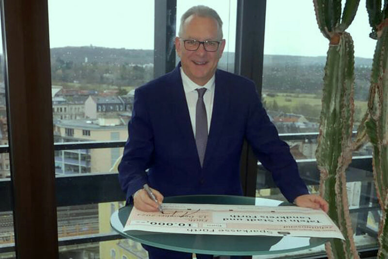 Bei seiner Verabschiedung Ende 2023 wartete Hans Wölfel, der scheidende Vorstandsvorsitzende der Sparkasse Fürth, mit einer handfesten Überraschung auf. Er überreichte einen Scheck in Höhe von 10.000 Euro an die Stiftung Sozial.Stark.Fürth in der Stiftergemeinschaft der Sparkasse, Geld zur Unterstützung der Tafeln in Stadt und Landkreis Fürth. Der Betrag war das Ergebnis einer Spendenaktion unter den geladenen Gästen der Abschiedsfeier im Sparkassenturm. In seiner Einladung bat Hans Wölfel seine Gäste auf Geschenke zu verzichten und lieber für einen guten Zweck zu spenden.